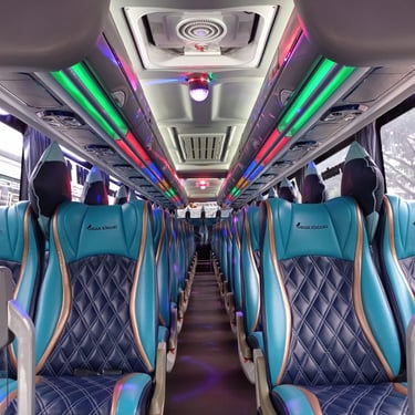 Nikmati fasilitas lengkap seperti reclining seat, audio-video entertainment, AC, dan interior elegan di setiap unit kami.