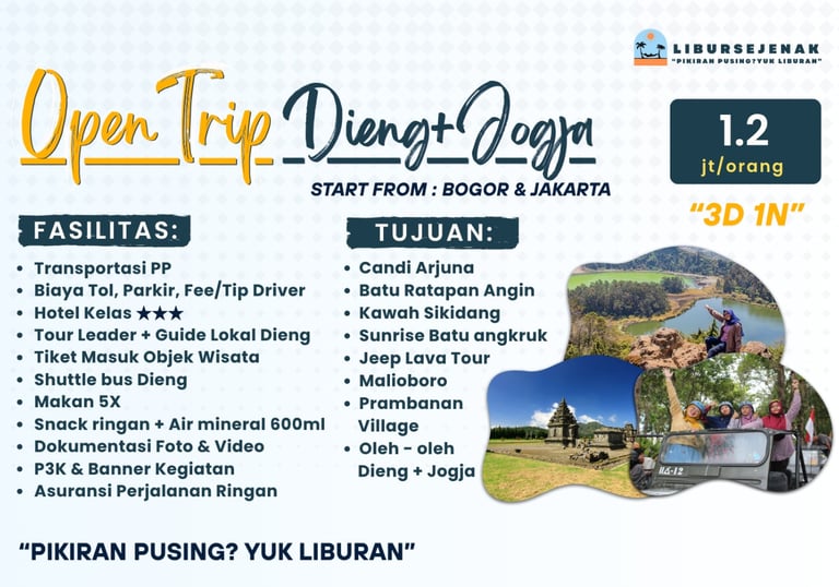 Open Trip DIENG & JOGJA – Liburan Penuh Cerita, Start dari Jabodetabek!